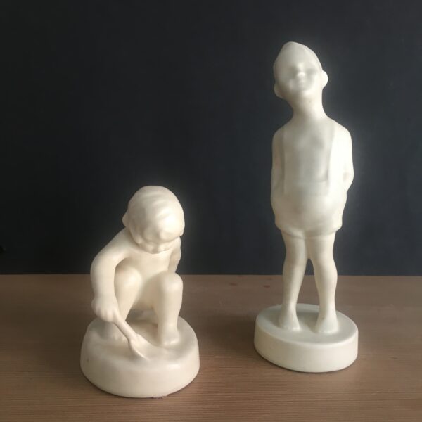 “Arbejdslyst” og “Buksetrold” “Arbejdslyst” og “Buksetrold” af Adda Bonfils og Verner Hancke for Ipsen keramik, hvidglaseret terracotta. << tilbage