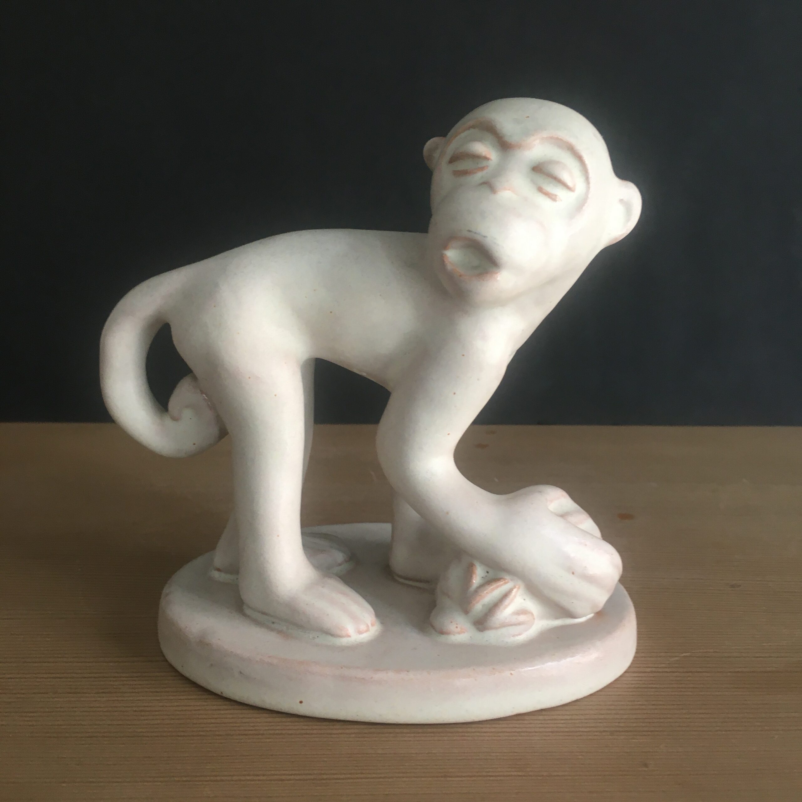 “Søvnig abe med bananer” “Søvnig abe med bananer” af Michael Andersen i hvidglaseret terracotta << tilbage