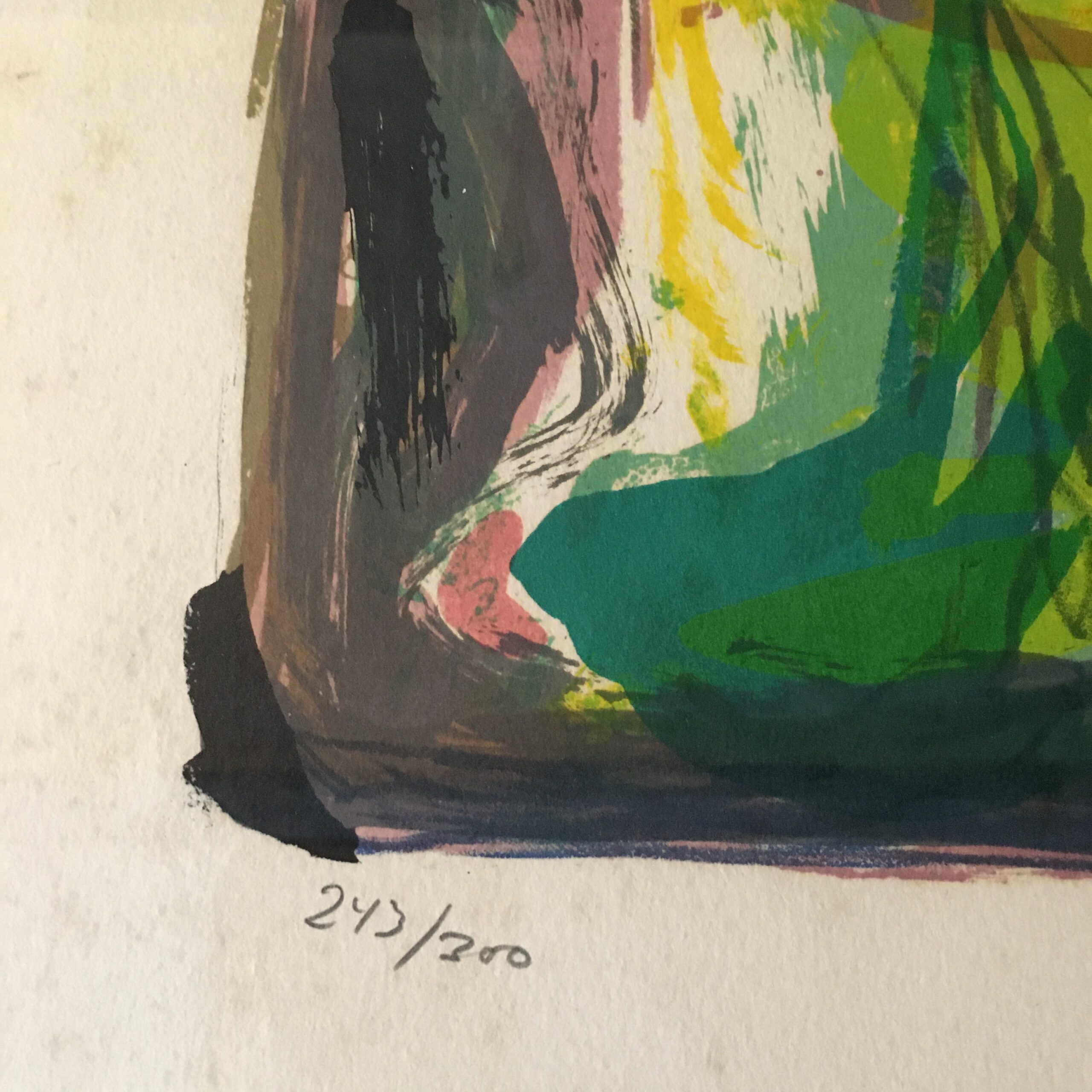 ”Nuit dechiree” eller ”Søvngængere” er et originalt litografi skabt i 1969 og signeret af kunstneren. Nr. 243/300. Lysmål 48 x 58 cm og rammemål 64 x 70 cm. Det er i en ny ”svæveramme” og med en gylden træramme.