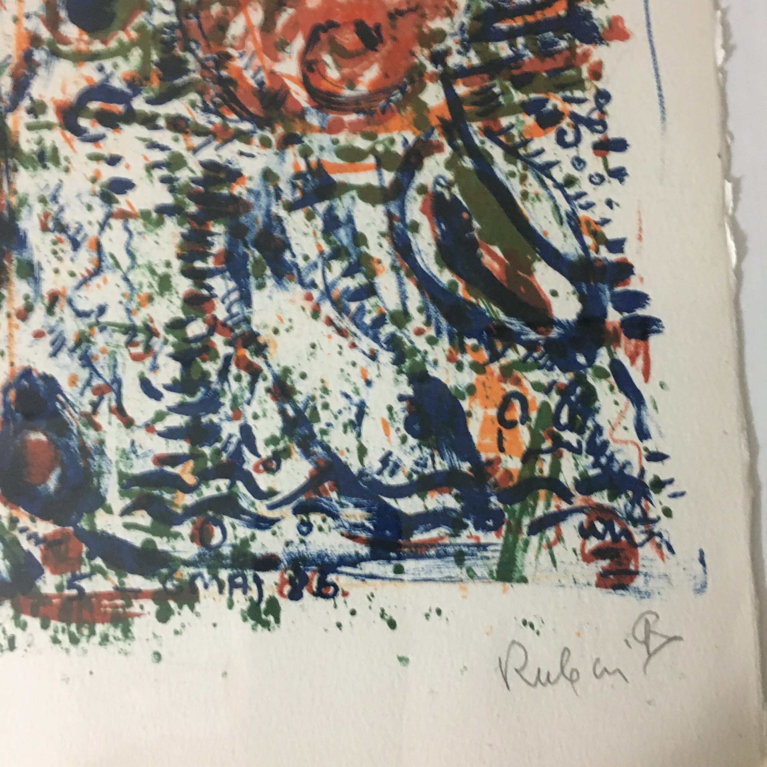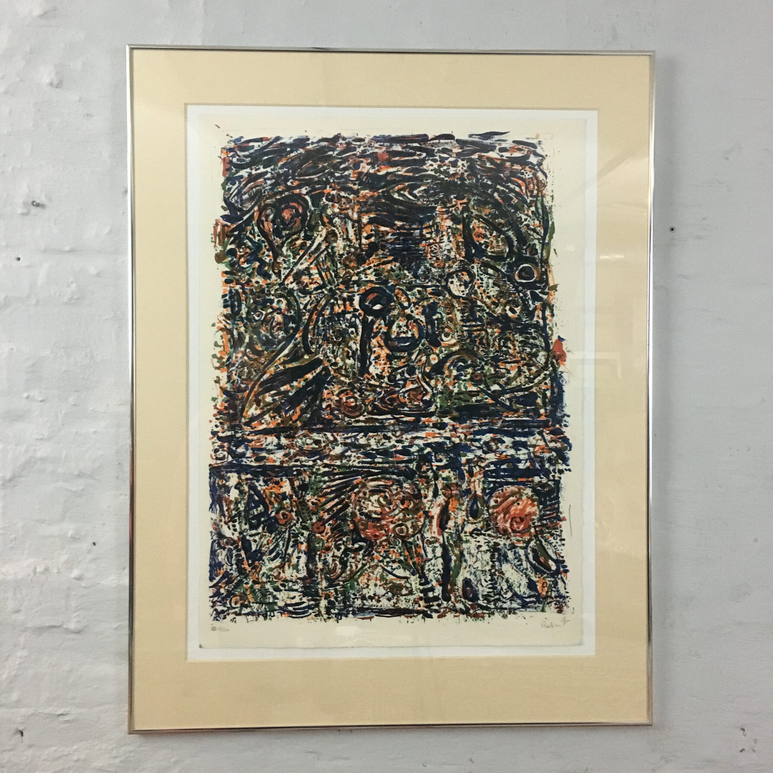 Dette originale litografi er signeret af kunstneren og nr. 115/210, trykt hos U M Grafik (i dag www.editioncopenhagen.dk) i 80-erne. Lysmål 58 x 78 cm. Og Rammemål 76 x 96 cm.