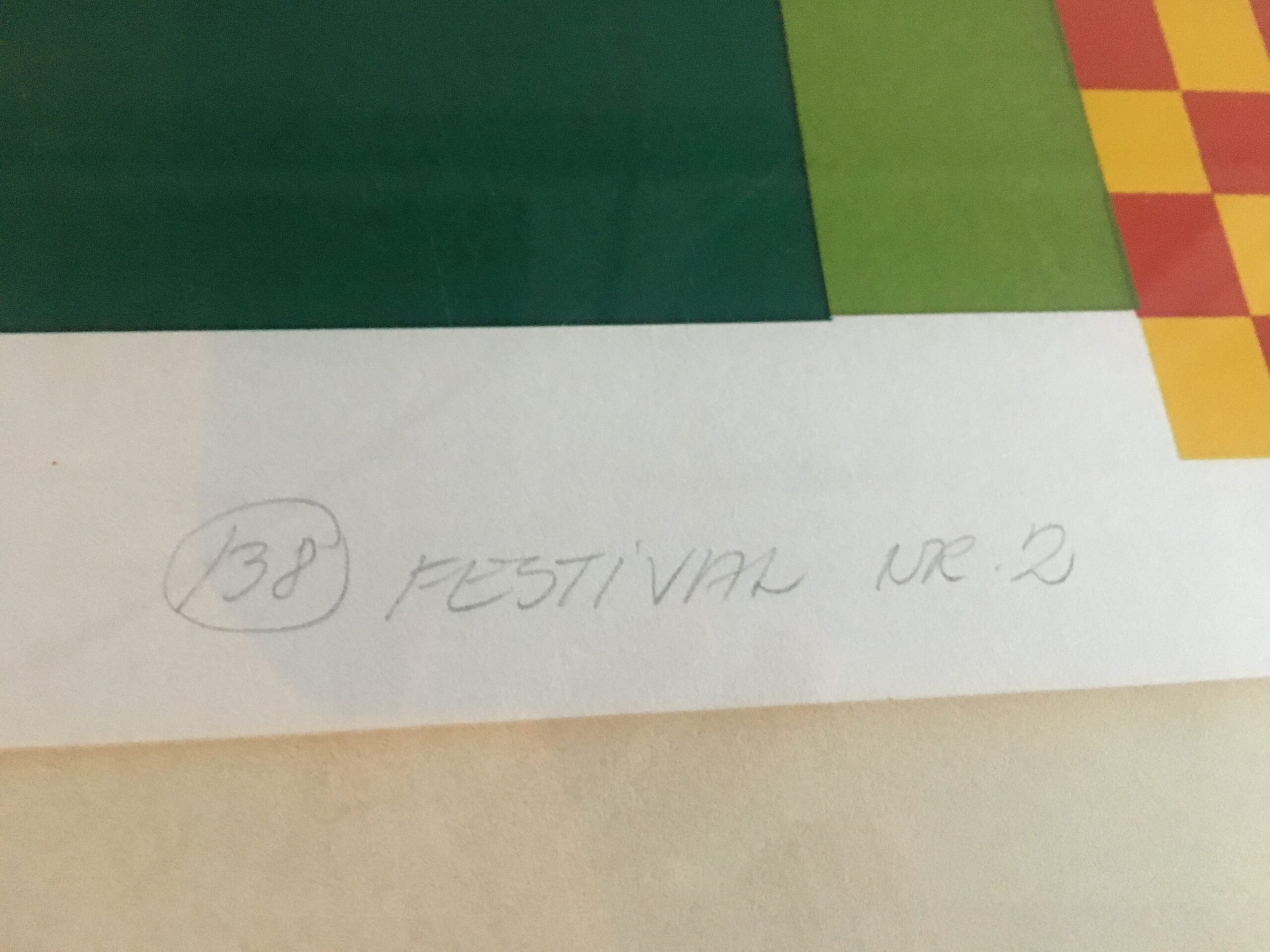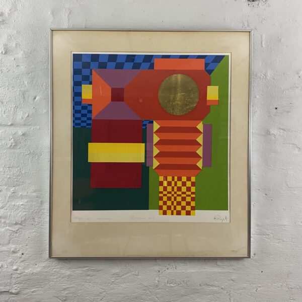 ”Festival nr 2” originalt farve silketryk (serigrafi), skabt i 1980. nr. 207/300. Lysmål 51/54 cm og rammemål 64/73 cm. Signeret K Riget.
