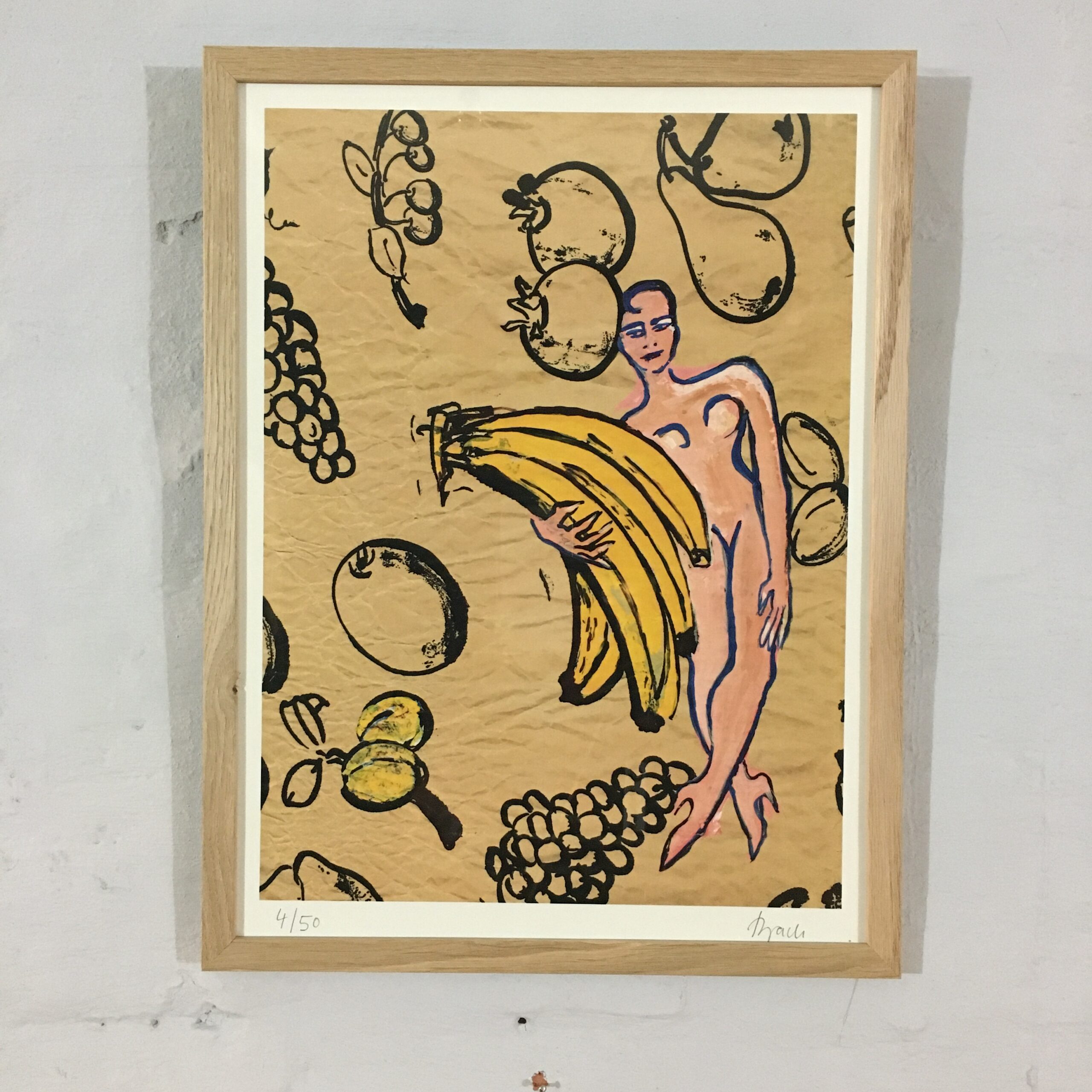 ”Nøgen kvinde med en frugt” er et giclee tryk på litografisk papir. Det er signeret af Bach og nummer 4 af kun 50 værker. Lys mål 36 gange 27 cm. Og rammemål er 40 x 30 m. Det med en lys egetræsramme.
