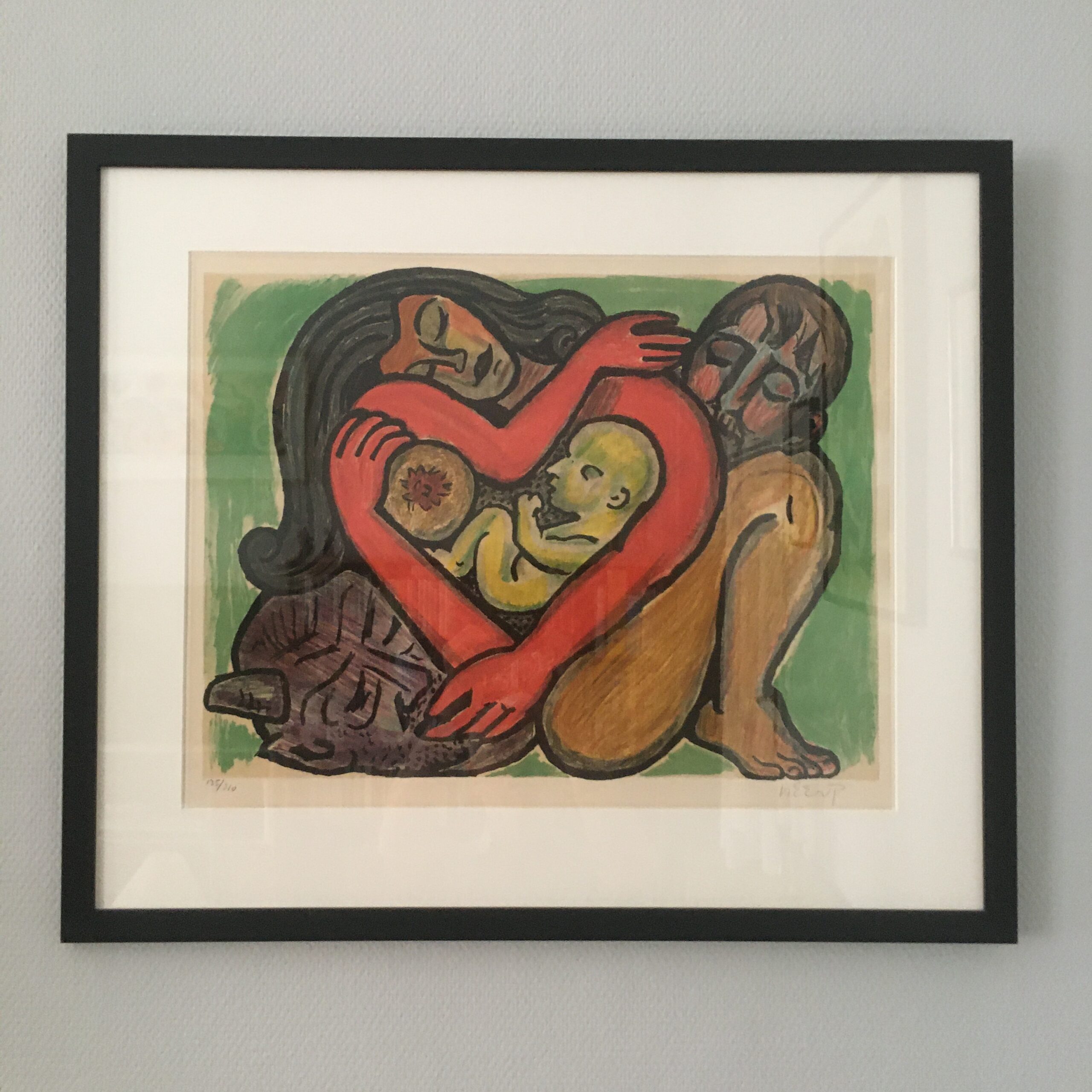 ”Hjertets Dramatik” sign. Heerup. Trykt 1969, nr. 135/310. Litografi i farver. Lys mål 43 x 55 cm. Rammemål 62 x 73 cm.