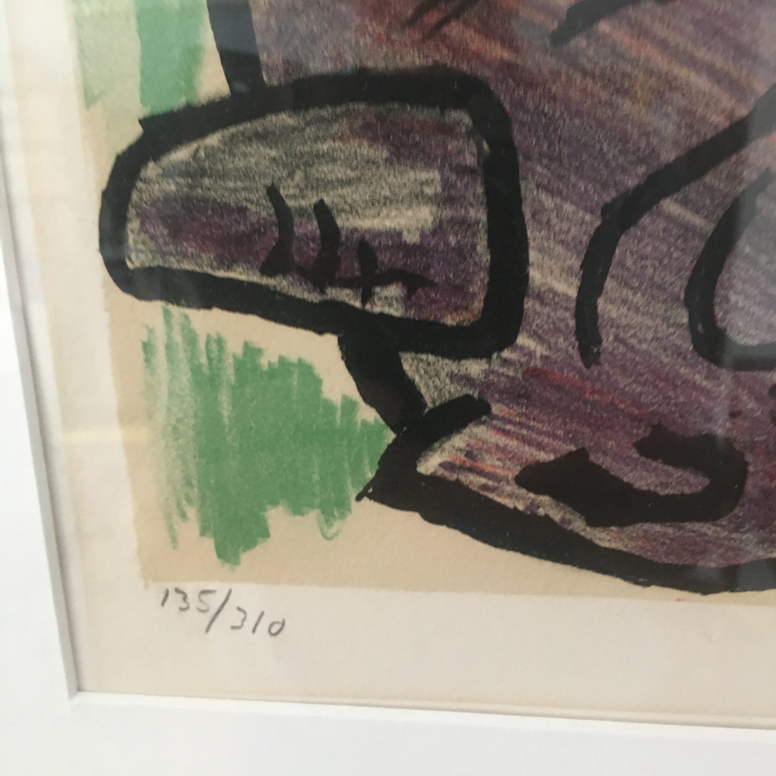 Ny indramning med sort træramme og med knækket hvid passepartout. Trykt på L´Arches papir på I. Chr. Sørensens værksted i Hjørring. I dag Hjørring Grafisk Værksted (www.hgv.dk)