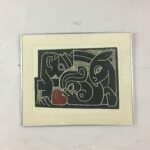 Moderne, originalt dansk litografi i sort og dybrødt af Henry Heerup (f. Frederiksberg 1907, og d. 1993 i Rødovre).