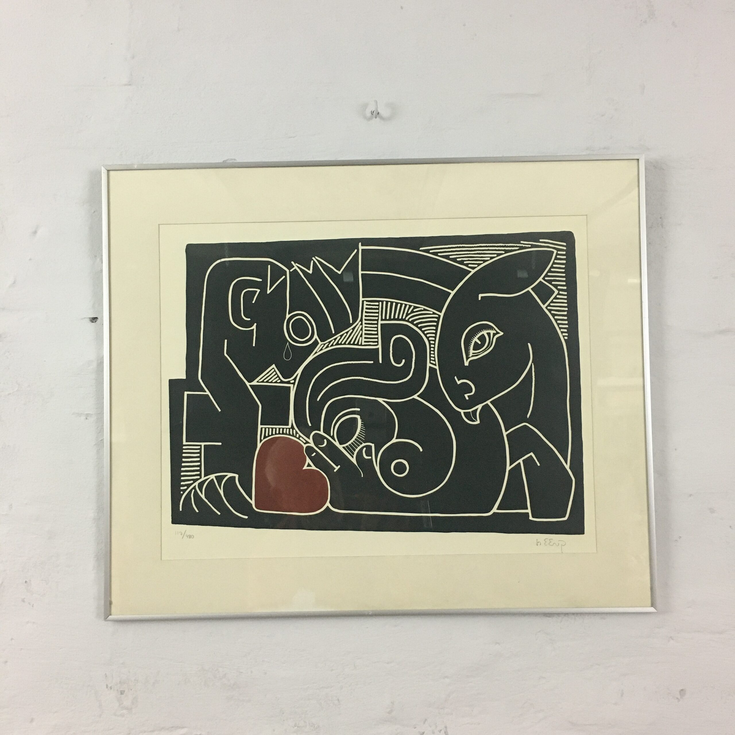 ”Hjertets ensomhed” sign. Heerup. Trykt 1974, nr.117 af 480. Lysmål 47 x 37 cm og rammemål 60 x 50 cm. Sjældent udbudt.