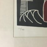 Indrammet med sølvfarvet alu-ramme. Trykt på Arches papir hos Sandberg og udgivet af forlaget Mostrup.