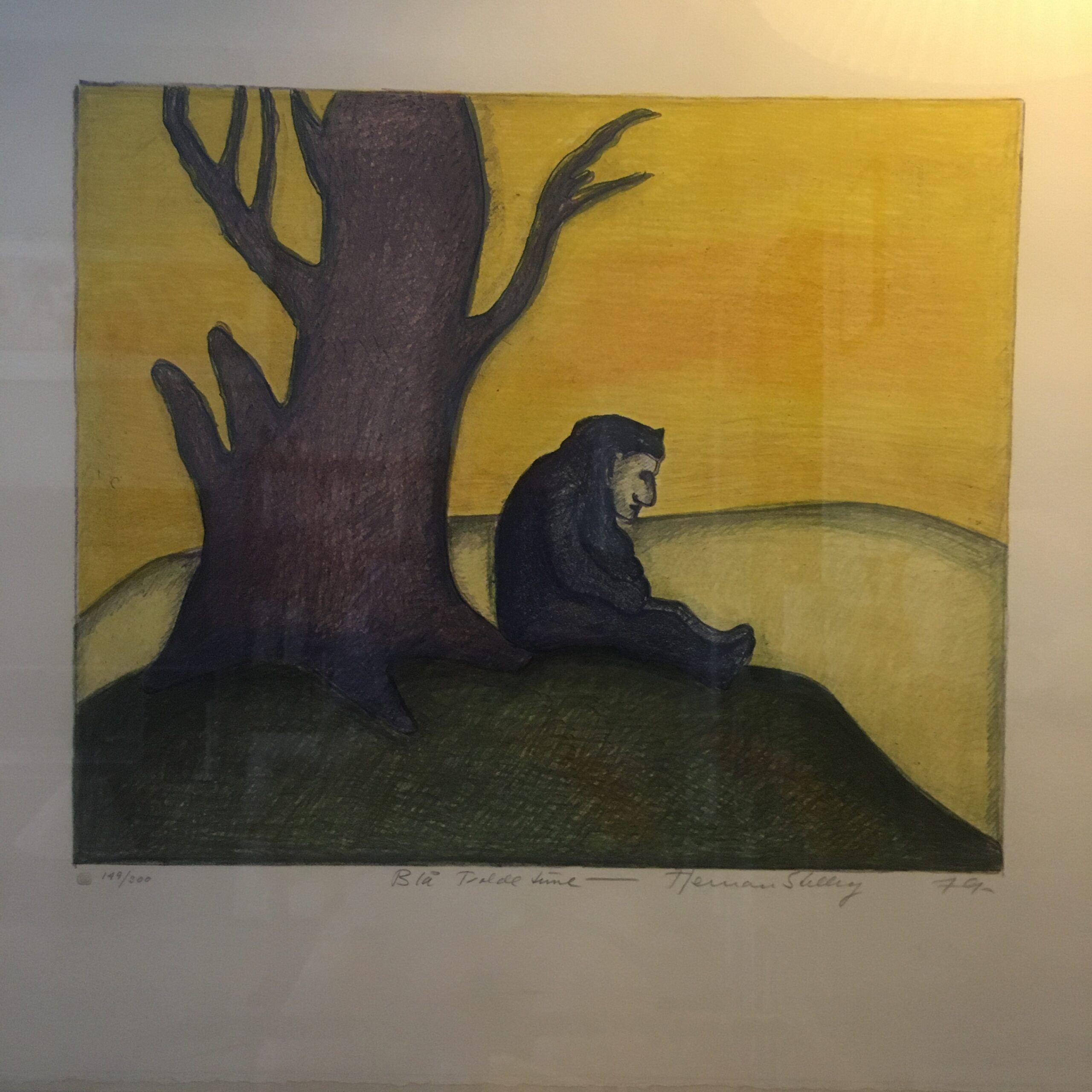 Blå trolde time et originalt litografi og et fint og sjovt værk fra Herman Stillings hånd og skabt i 1979. Lysmål 39 x 56 cm. Rammemål 49 x 84 cm. Og signeret Herman Stilling. Det trykt hos U M Grafik (i dag www.editioncopenhagen.dk ). Og med alu ramme.
