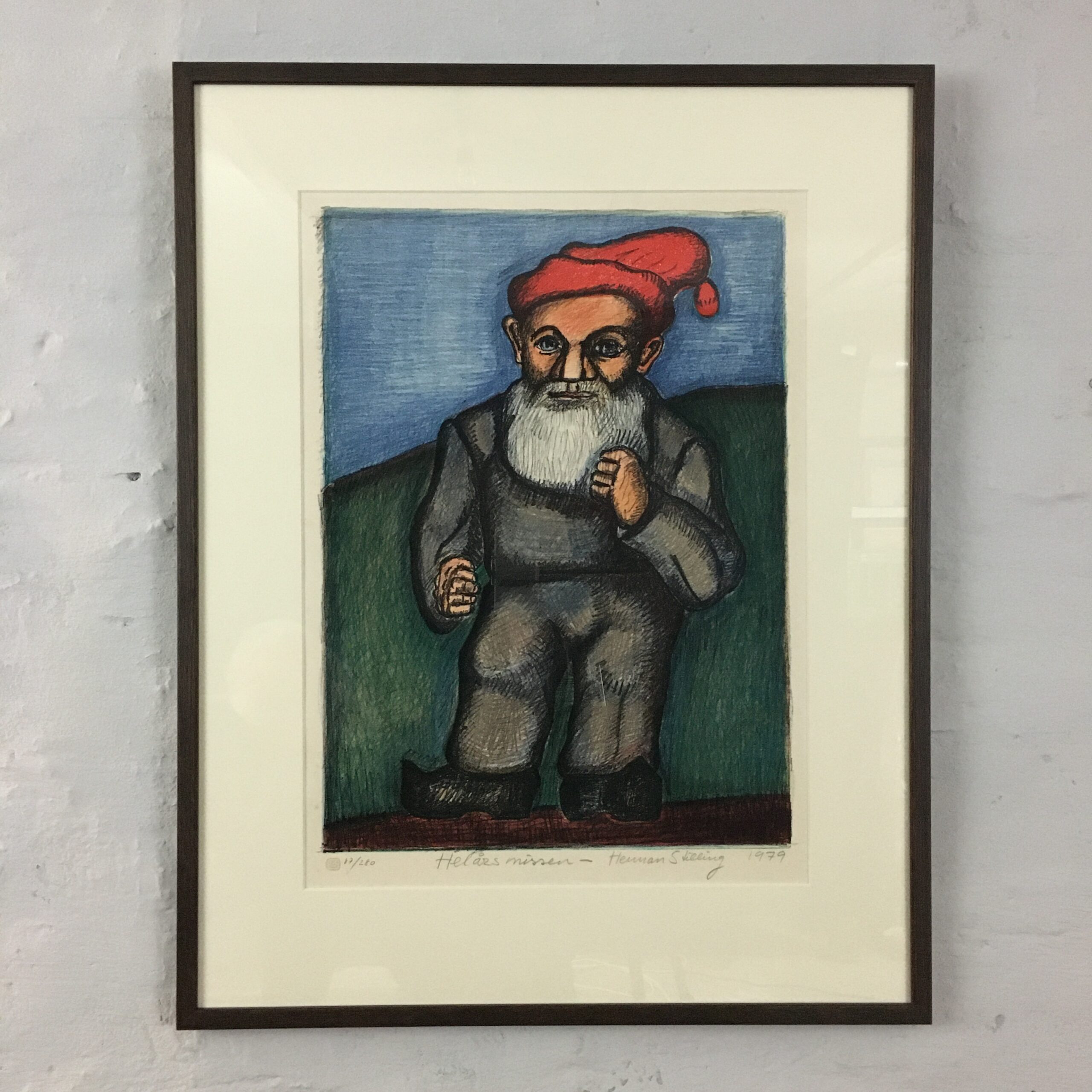 Helårsnissen et originalt litografi er et fint og sjovt værk fra Herman Stillings hånd og skabt i 1976. Lysmål