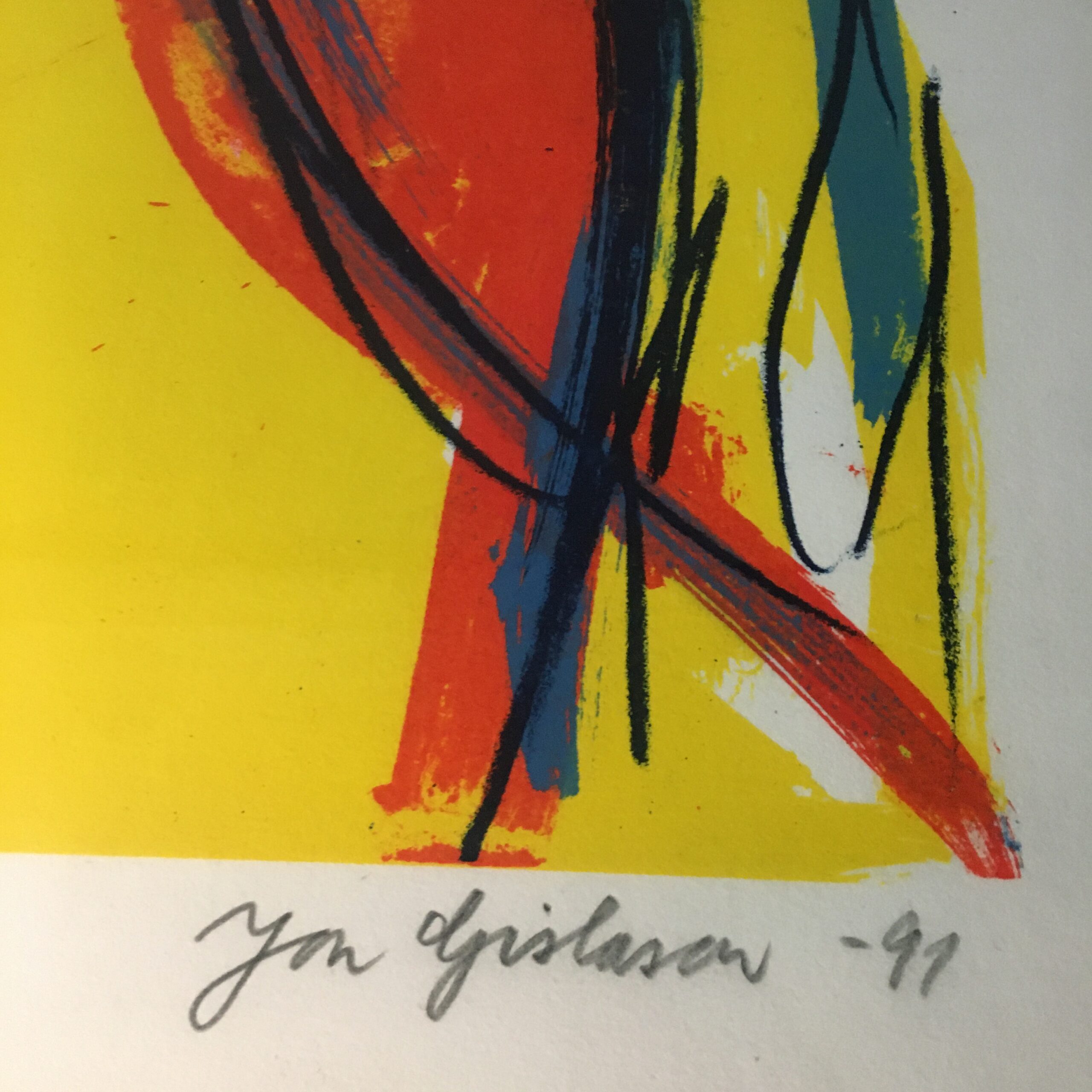 Moderne, abstrakt og ny ekspressionistisk, originalt litografi af Jon Gislason født 1955 i Ry, Danmark.