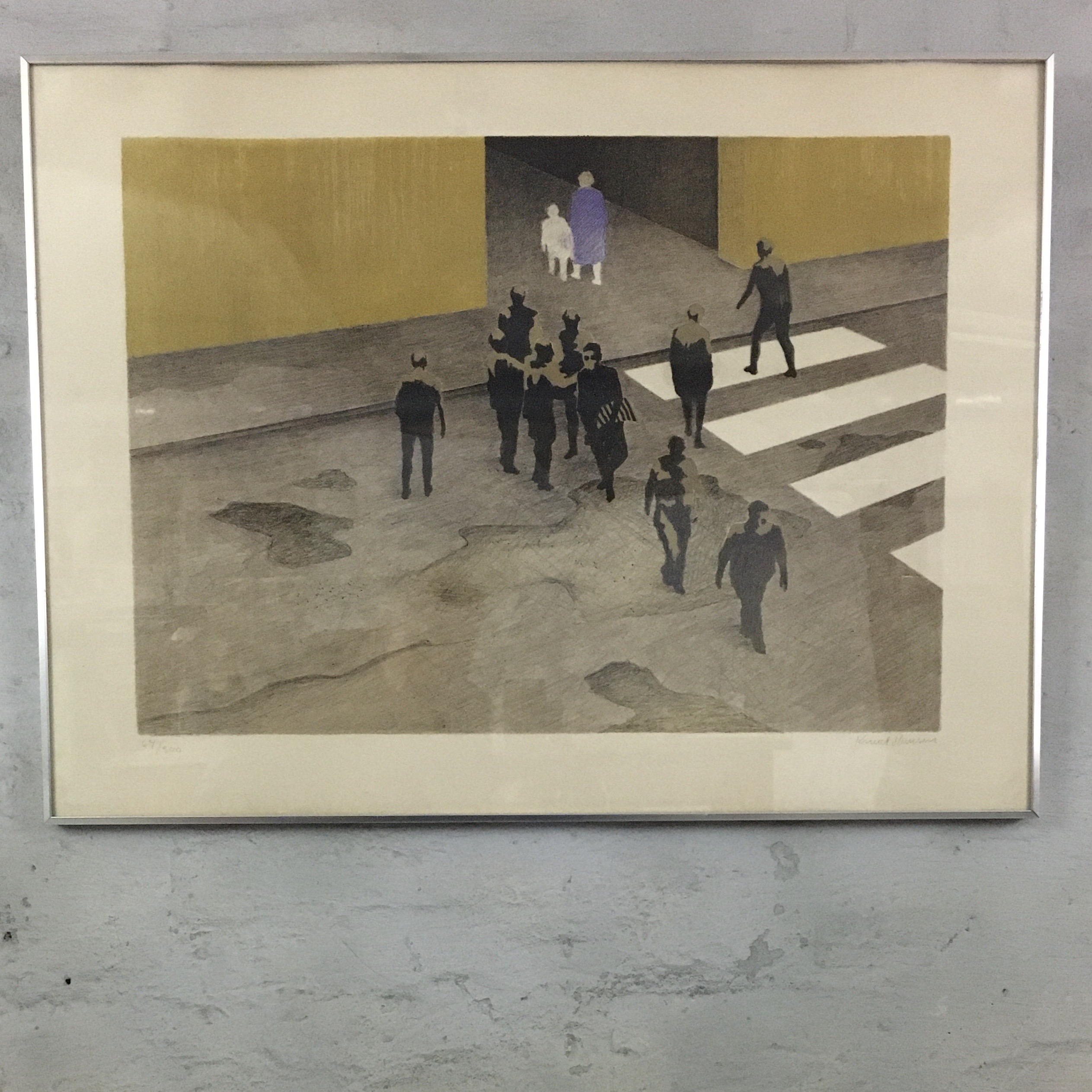 ”Mennesker i byen” er et ud af 3 originale litografier indenfor samme tema, trykt i 1980erne hos J. Chr.