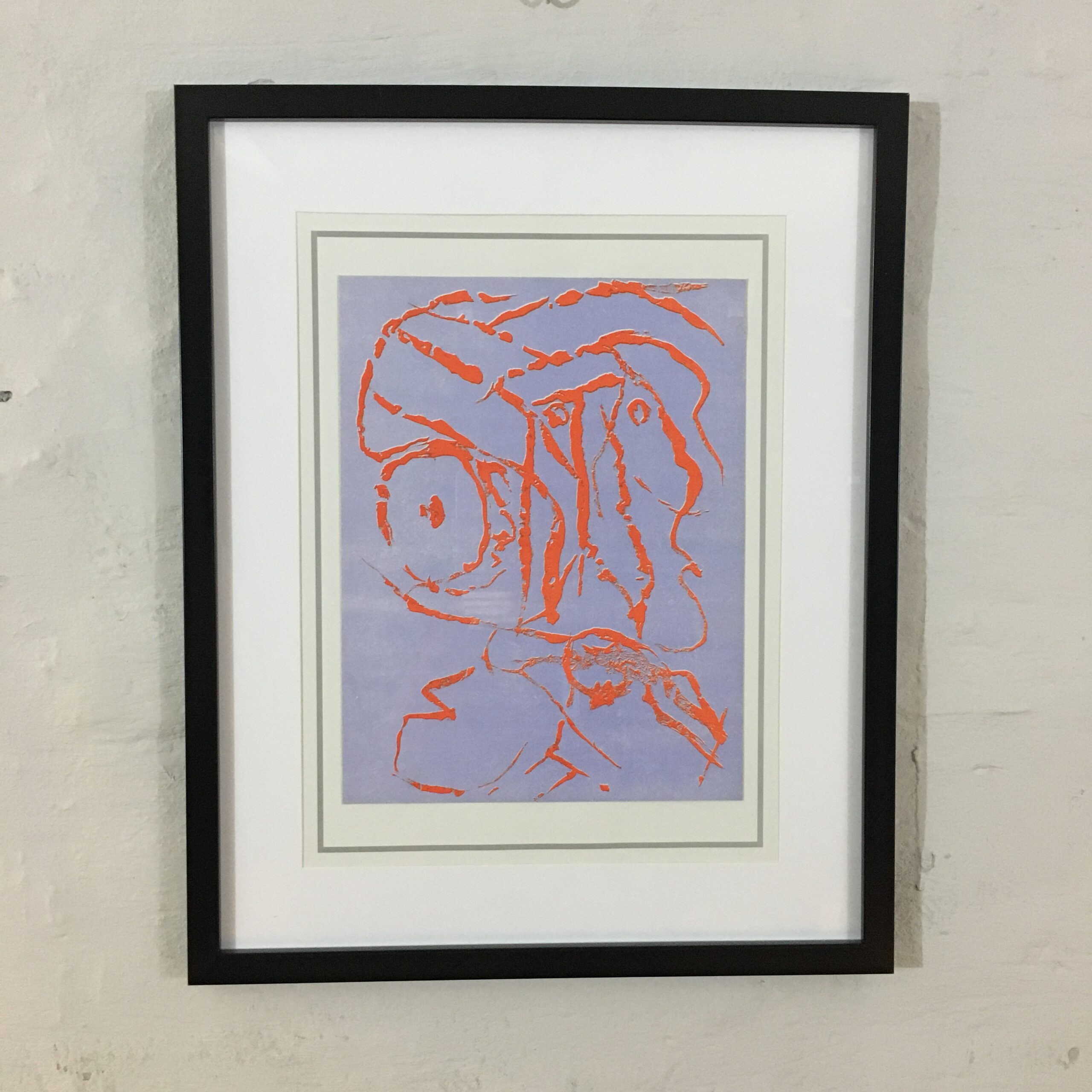 Farvelitografiets lysmål er38 x 29 cm og rammemål 52 x 42 cm. Det er med passe partout og en sort ramme. Det fra serien XX:e siècle og nr. 14 heraf og fra 1960.