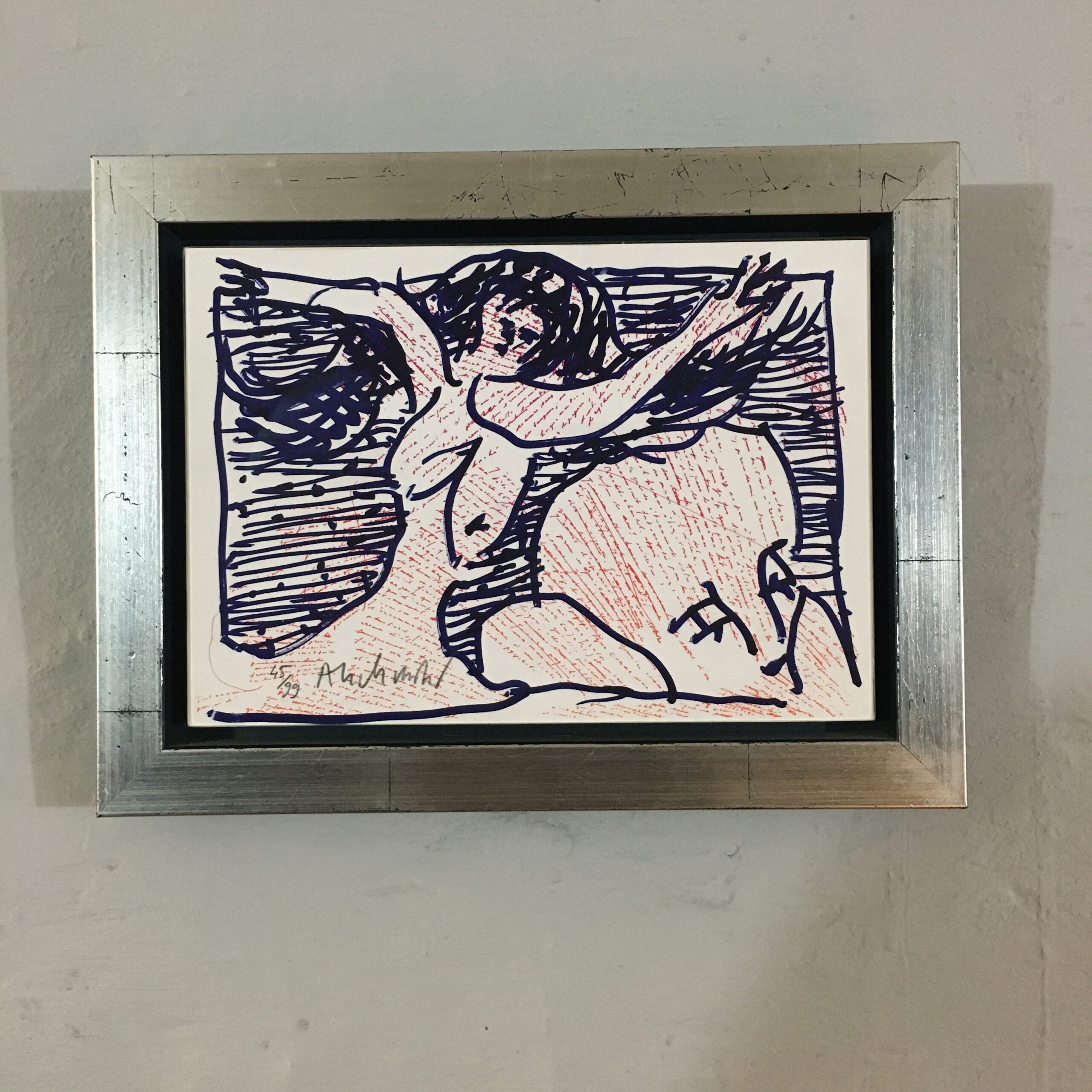 ”Femme contre homme” er et originalt farvelitografi, signeret af kunstneren. Trykket er nr. 45 af kun 99. tryk. Lys mål 21 x 29 cm cm. Rammemål 29 x 38 cm. Værket er med en ekstraordinær elegant ”luftramme” i massivt sølvfarvet træ.