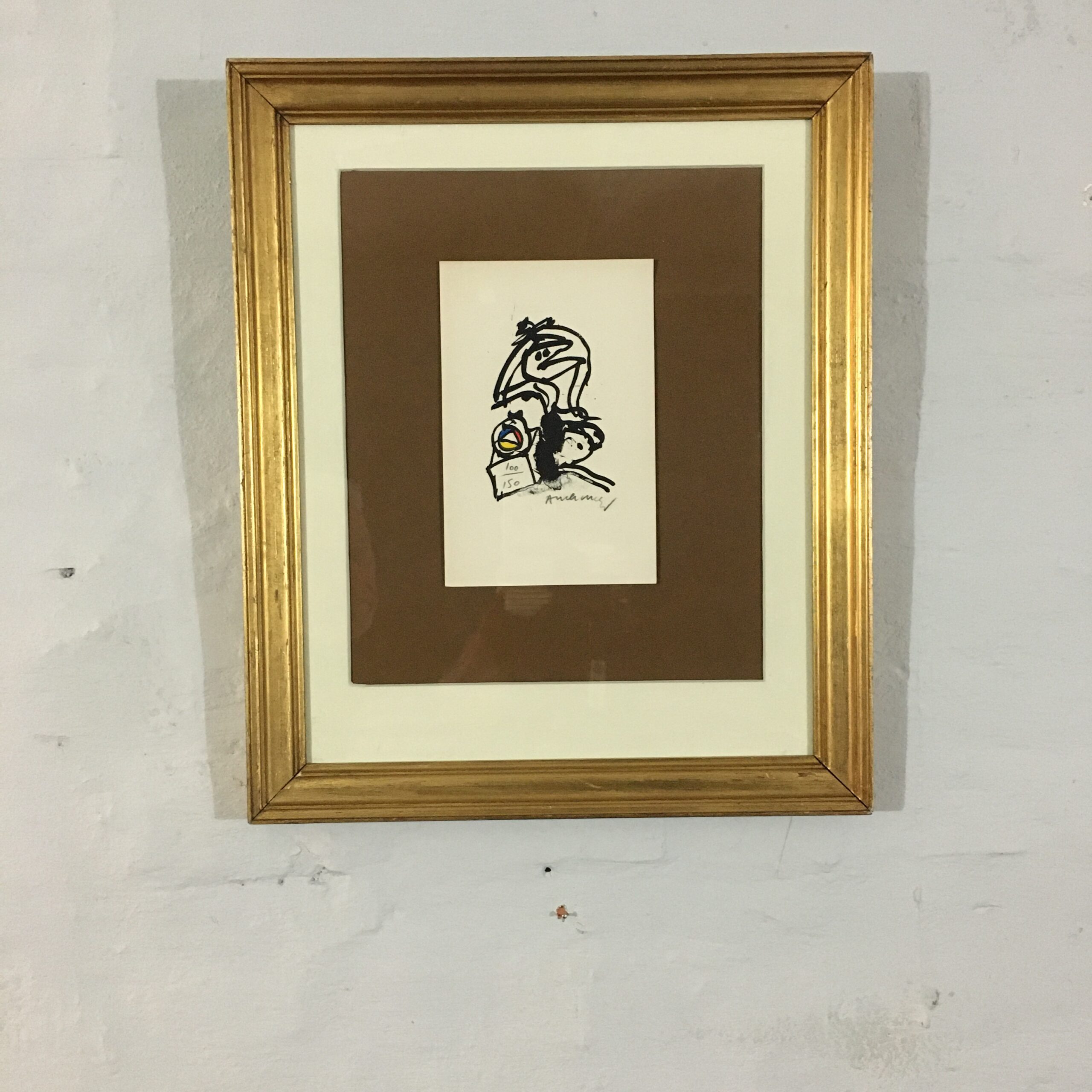 ”Komposition” er et originalt farvelitografi, signeret af kunstneren. Trykket er nr. 100 af kun 150. tryk. Lys mål 21cm x 14 cm. Rammemål 47 x 39 cm. Værket er med pas partout og en gylden træramme.