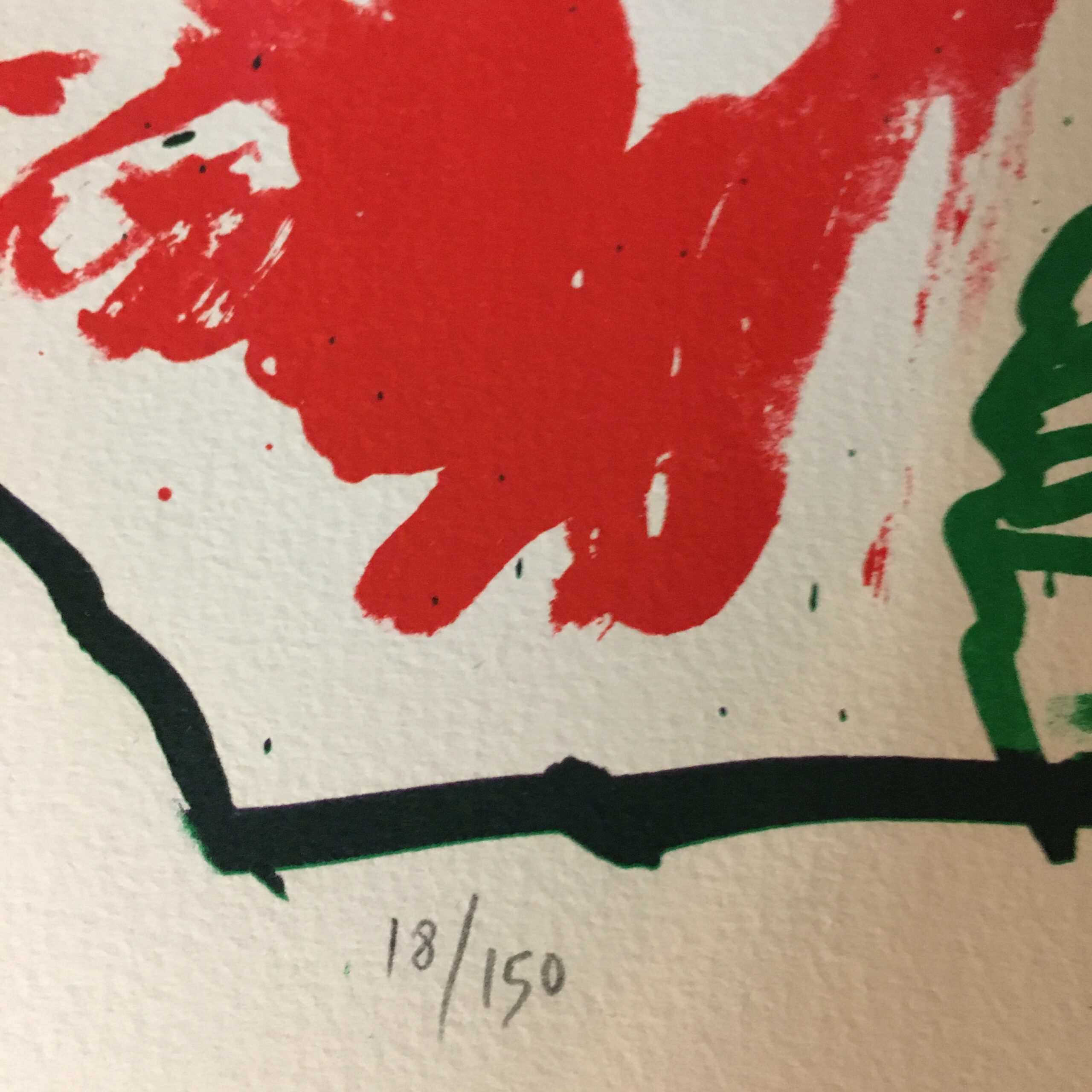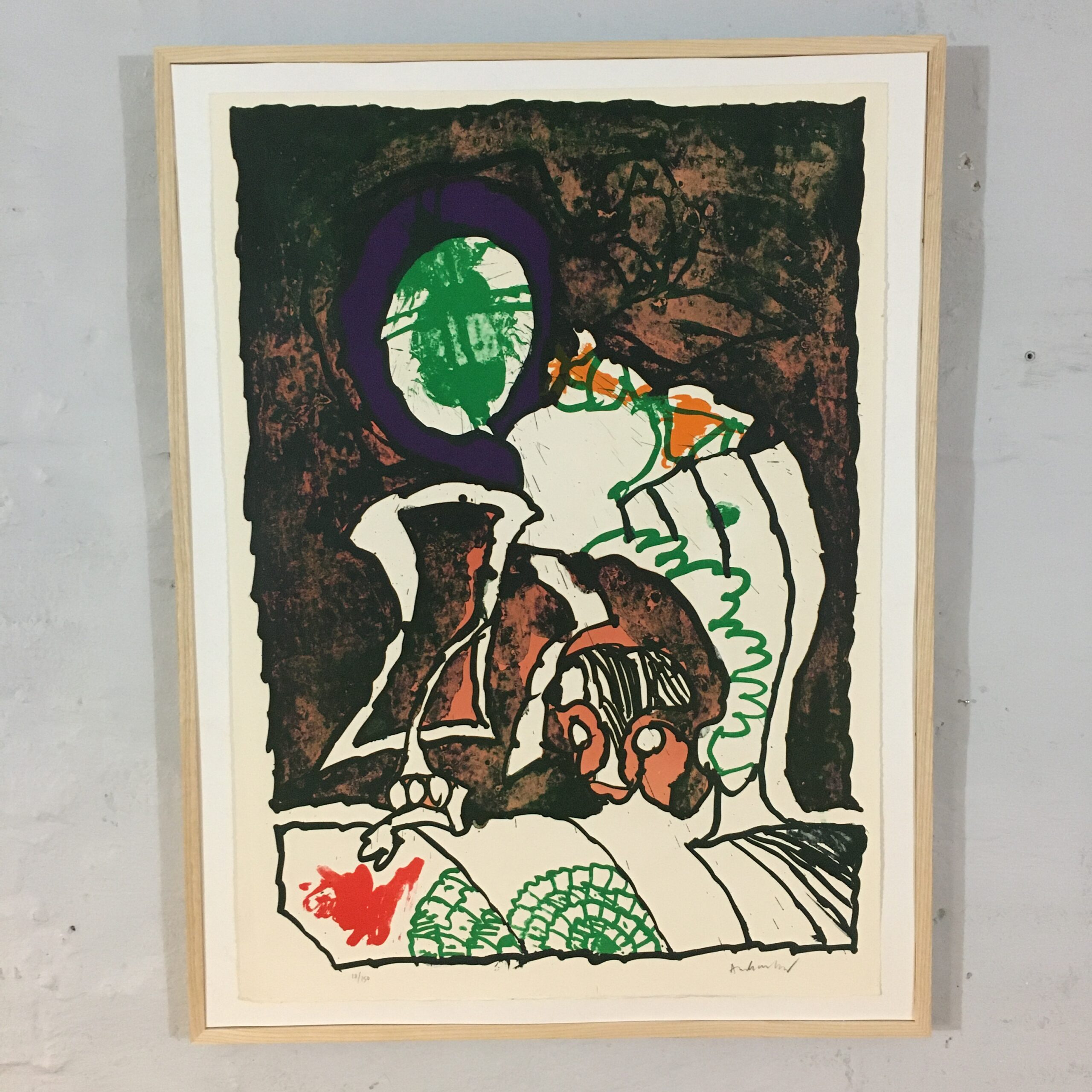 ”Gnomes et Gnose” (”Grøn sol”) er et originalt farvelitografi, signeret af kunstneren. Tryk nr. 18/150. Lysmål 76 x 54 cm. Rammemål ca. 83 x 63 cm. ”Svæveramme” af egetræ.