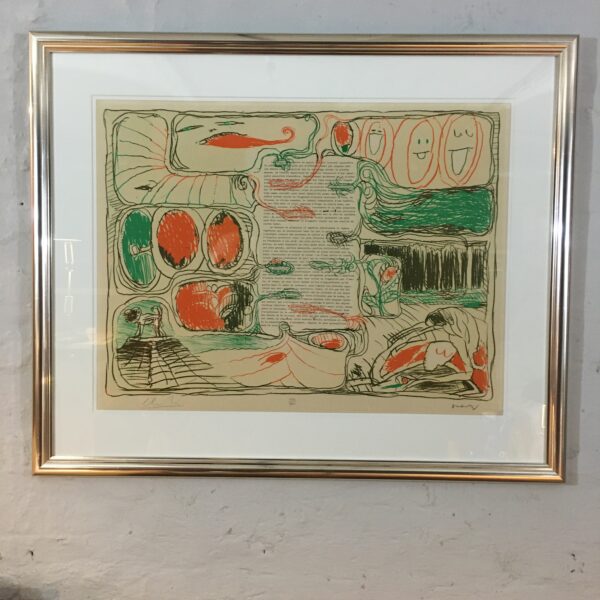 Det originale litografi er nr. 158 af 500, signeret af kunstnerne, lysmål 60 x 79 cm og rammemål 84 x 99 cm. Indrammet med passe partout og en sølvfarvet, gedigen træramme.