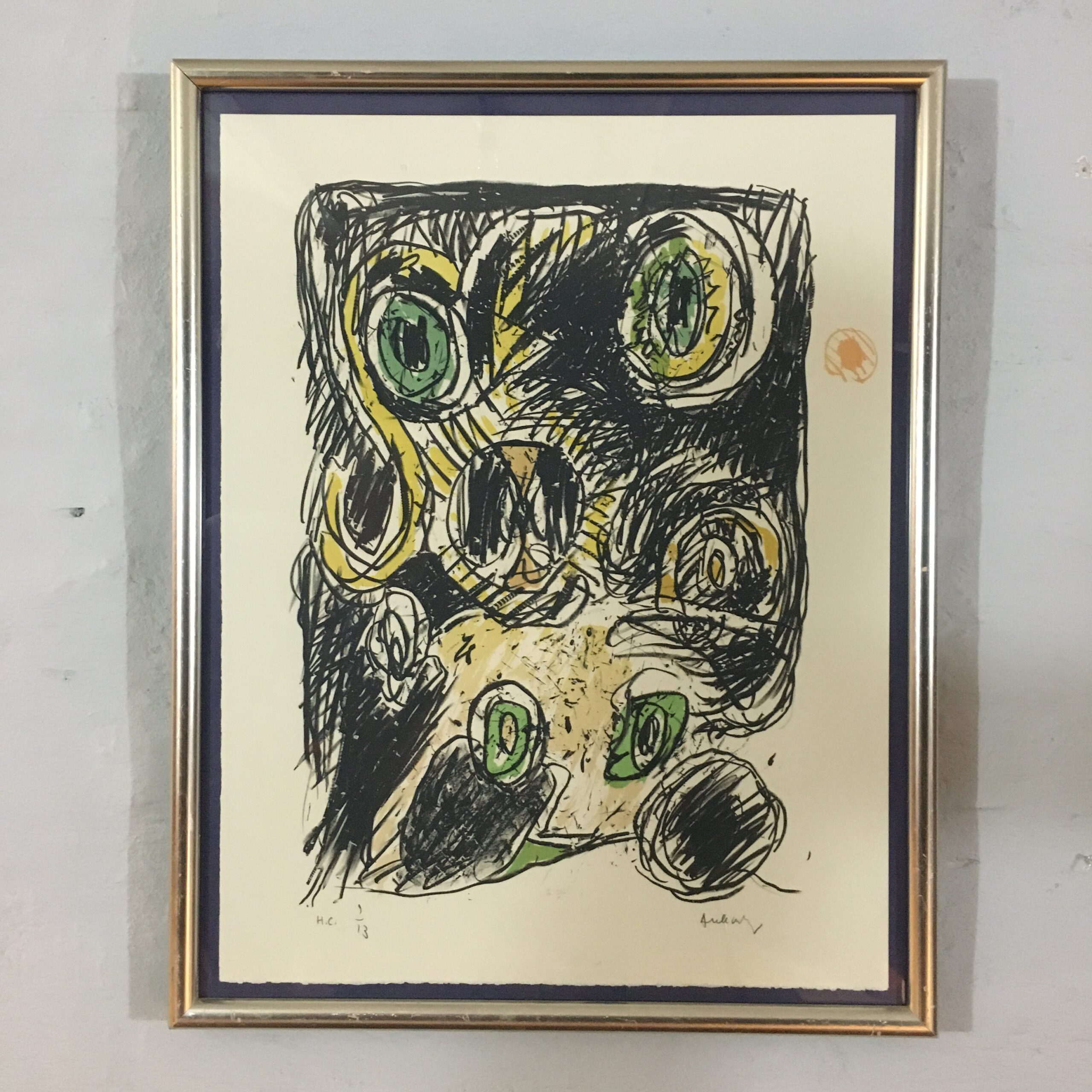 ”Sac des lignes, 1971” er et originalt farvelitografi, signeret af kunstneren, H.C. nr. 1 af 13. Lysmål 56 x 44 cm. Rammemål 62 x 49 cm. Og med svæve ramme og en smuk sølvfarvet træramme.