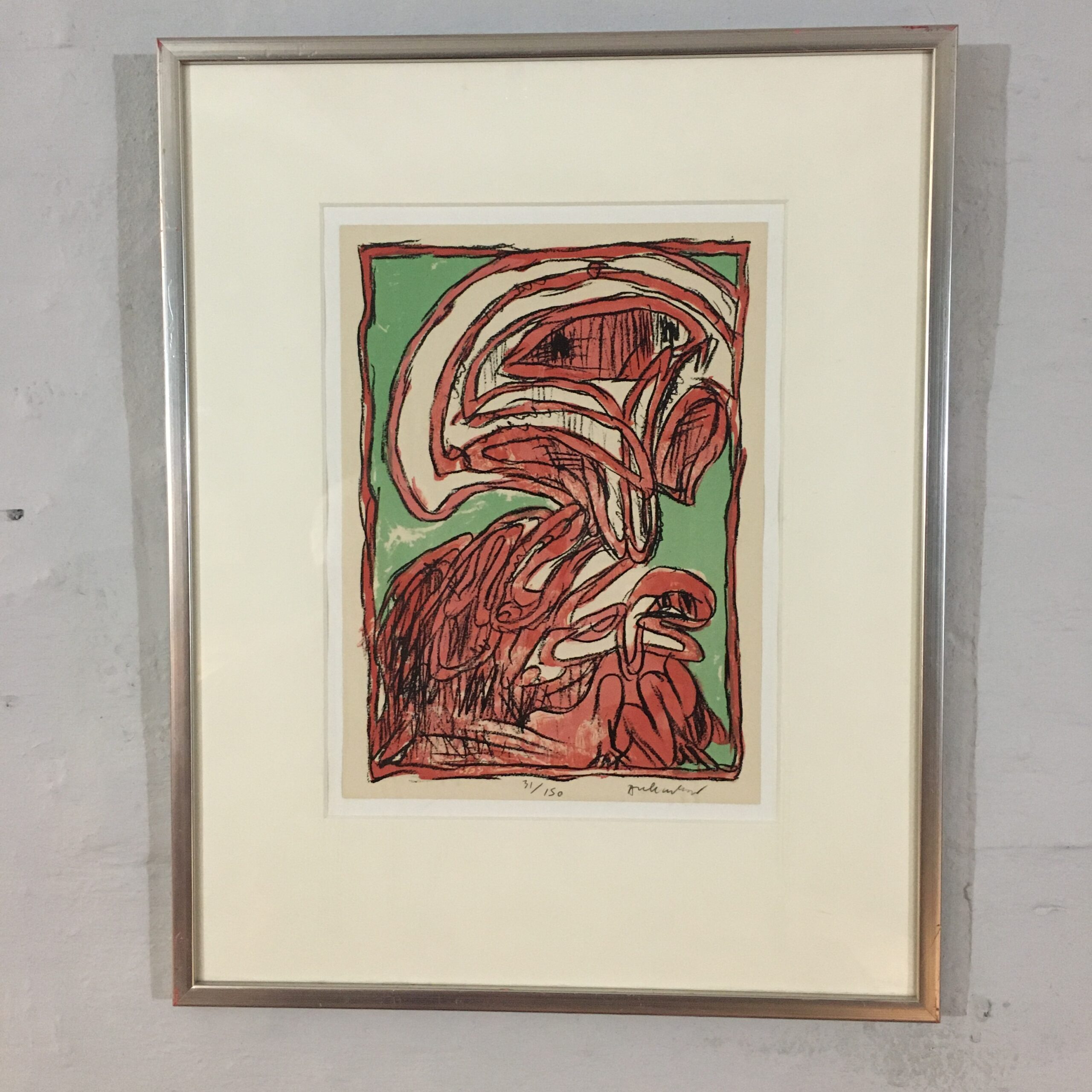 ”Schismes” (fra serien skismaer) et originalt farvelitografi, signeret af kunstneren. Trykket er nr. 31 af kun150. tryk. Lys mål 35 x 25 cm. Rammemål 55 x 43 cm. Sølvfarvet træramme og med passe partout.