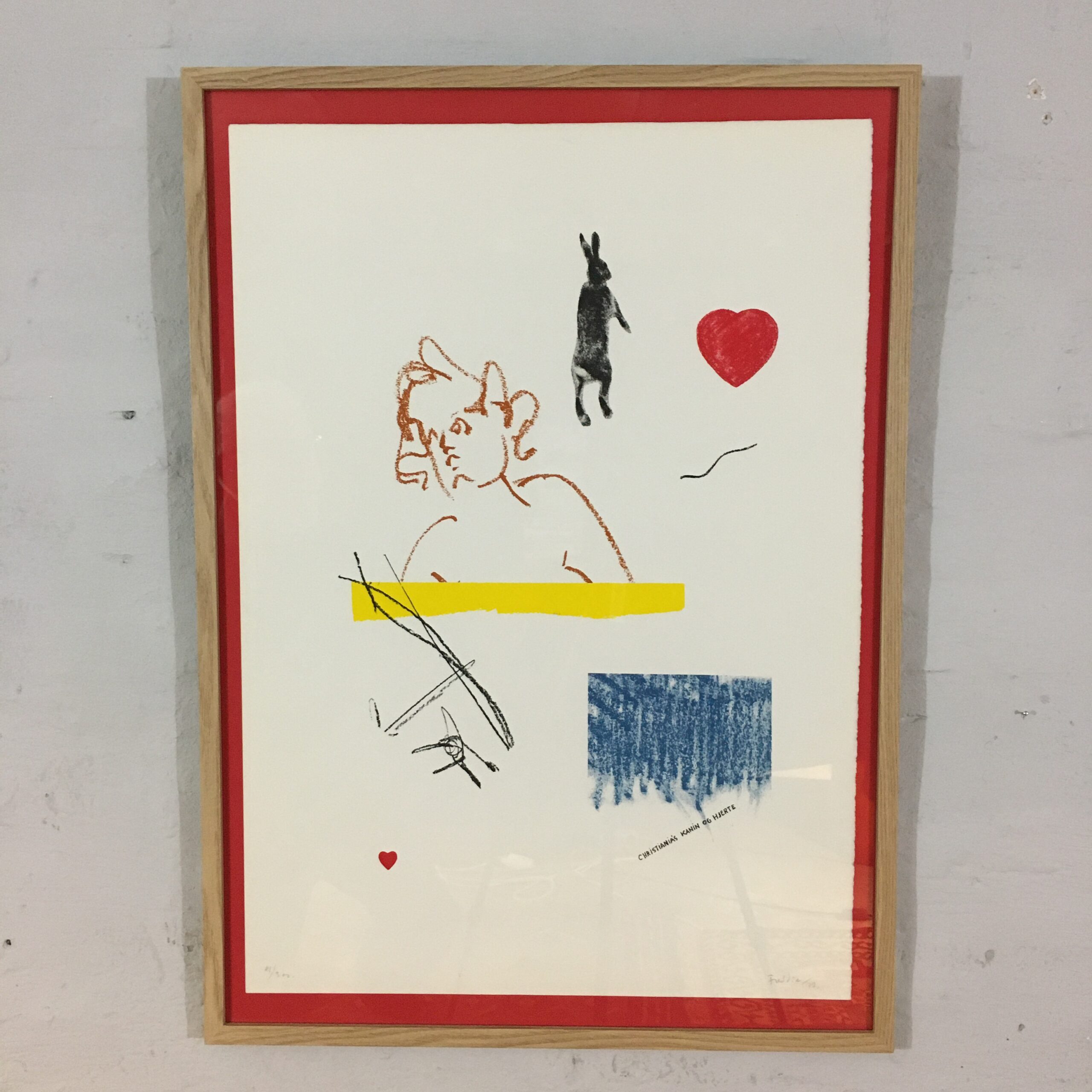 Christianias Kanin og Hjerte blev skabt og solgt til fordel for ”Fristaden Christiania” i København. Det er signeret af kunstneren, ”Freddi 77” og et serigrafi nr. 81 af 300. Lysmål 65cm x 46 cm og rammemål 72 cm x 62 cm. Det er med en egetræramme.